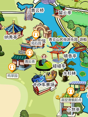 山东省安丘市4A青云山民俗游乐园手绘地图、语音讲解、电子导览等智能功能正式上线,青云山民俗游乐园是一处突出民俗文化特色,集旅游观光、休闲、娱乐、度假、购物于一体的大型综合性旅游景区,电话18801294652