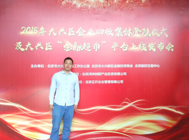 2018年7月17日小泥人周总应邀由参加在鸿坤•金融谷由大兴区金融办、大兴新区金融投资商会和北京股权交易中心联合举办的2018年大兴区金融系列服务推介会。此次参加会议的还有大兴区区长、副区长等领导。