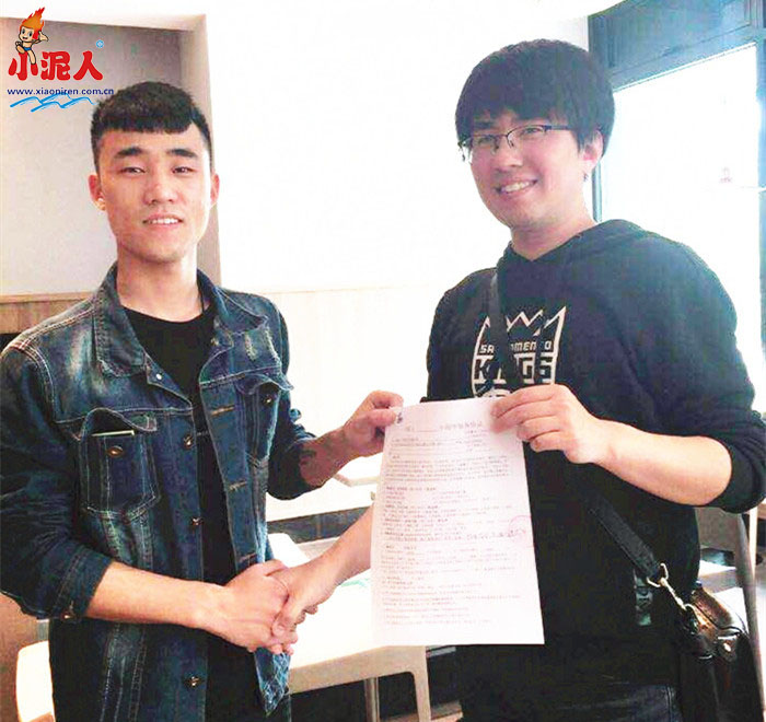 2018年4月27日,小泥人市场部李经理与教育平台的王总在位于北京中关村科技园的小泥人总部大厦签订小程序合约。